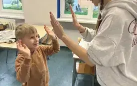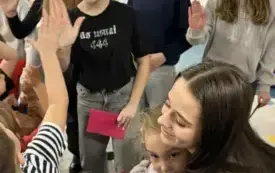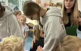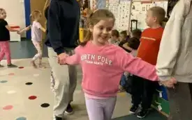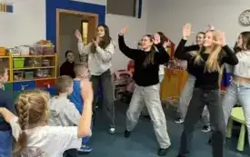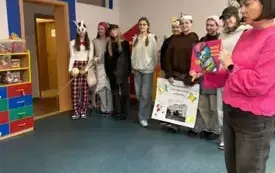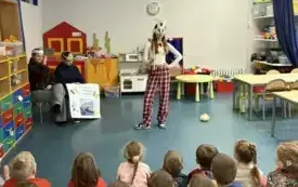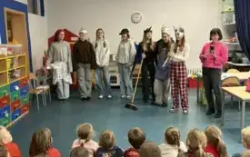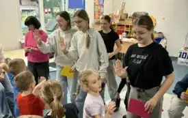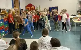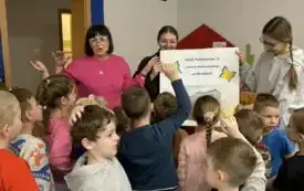 W ramach promocji naszej szkoły odegrały scenkę teatralną o Koziołku Matołku. Zatańczyły też razem z przedszkolakami zumbę i latino, a dzieci odwdzięczyły się piosenką o św. Mikołaju i przepięknymi, własnoręcznie zdobionymi laurkami. Było mnóstwo radości i uśmiechów.