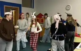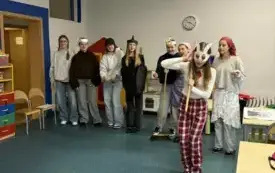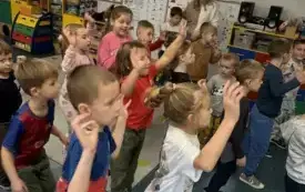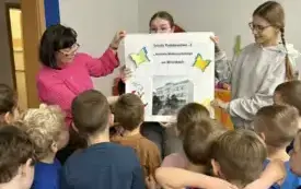 Ola, Zosia, Marianna, Sandra, Natalia z klasy 8a oraz Gabrysia i Martyna z klasy 8b wraz z opiekunką (niżej podpisaną) odwiedziły w czwartek, 20 listopada grupę „Wilczki” z Przedszkola nr 2 „Wronczusie”.
