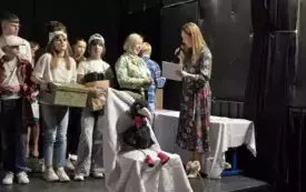 Piosenkę „Stare fotografie” zaśpiewała grupa „Akord”, po czym na scenie zawitała grupa „Złote Maski” ze Szkoły Podstawowej im. Jana Ostroroga w Ostrorogu, której opiekunką jest pani Joanna Olech-Biniek. Zaprezentowali nam przedstawienie pt. „Dziewczynka z zapałkami”.